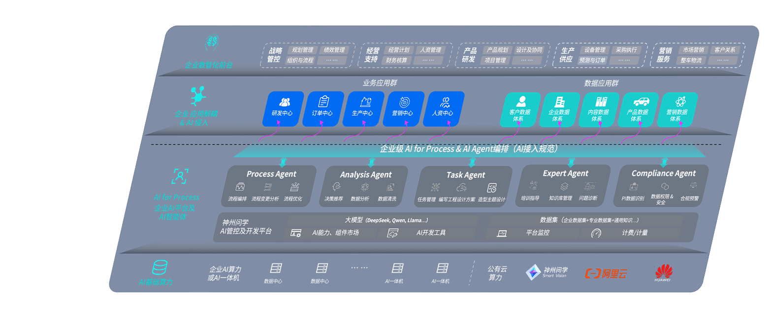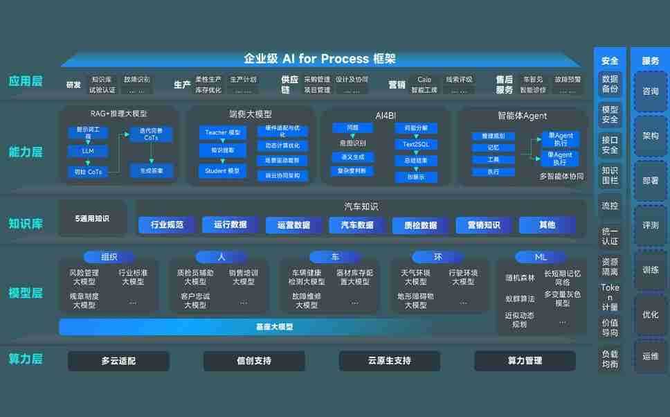 端到端的一站式AI工作空间深度融合了从企业战略规划到日常经营的全流程业务板块,,,,定向解决车企内部领域多、、、、部门多、、链条长、、、场景碎片化等难题,,,,支持车企快速构建以AI为核心的生产力写作体系,,,,实现任务执行与AI能力的无缝集成与交互